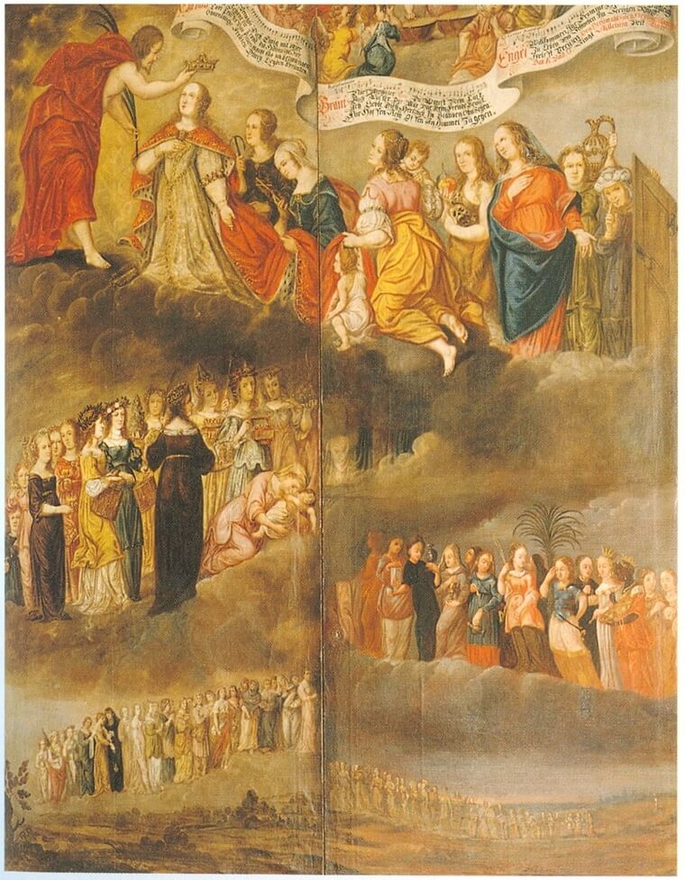 לפרבר מזכיר כמה ציורים חשובים שמבטאים את האמונה האלכימית ותפיסת העולם האזוטרית המתחזקת לאחר מלחמת 30 השנה, ביניהם הטריפטיכון של הנסיכה אנטוניה מווירטמברג (1613–1679). Antonia of Württemberg היא הייתה דמות יוצאת דופן, אישה משכילה שהתעניינה ברוחניות ובאמנות. אנטוניה ידעה עברית ולמדה קבלה, הייתה בקשר עם יאקוב שפנר (מייסד הפייטיזם) ואף למדה יחד אתו קבלה, וגם עם המיסטיקן יוהאן ולנטין אנדריאה (Johannes Valentinus Andreae) שכתב על "החתונה האלכימית של כריסטיאן רוזנקרוץ". בהיותה בת 40 היא תכננה ביחד עם משכילים מהחצר שלה ייצוג אמנותי חזותי שיבטא את אמונותיה ואת תורות הקבלה והאלכימיה שנחשפה להן, וכך היה. צייר החצר של שטוטגרט, יוהאן פרדריק גרובר, עמל במשך ארבע שנים (1659–1663) על יצירה של טריפטיכון בגובה 4.3 מטר ורוחב 2.7 מטר, בתוך מסגרת מזבח גדולה יותר ומפוסלת. טריפטיכון הוא ציור משולש שבו יש שתי דלתות שנפתחות ומגלות ציור פנימי. בדלתות החיצוניות רואים את תהלוכת החתונה של הנפש – שולמית עם החתן ישוע (החתונה האלכימית). בחלק הפנימי של הדלתות מופיעה סצנת יום של מציאת התיבה של משה בנילוס וסצנת לילה של בריחת המשפחה הקדושה למצרים.